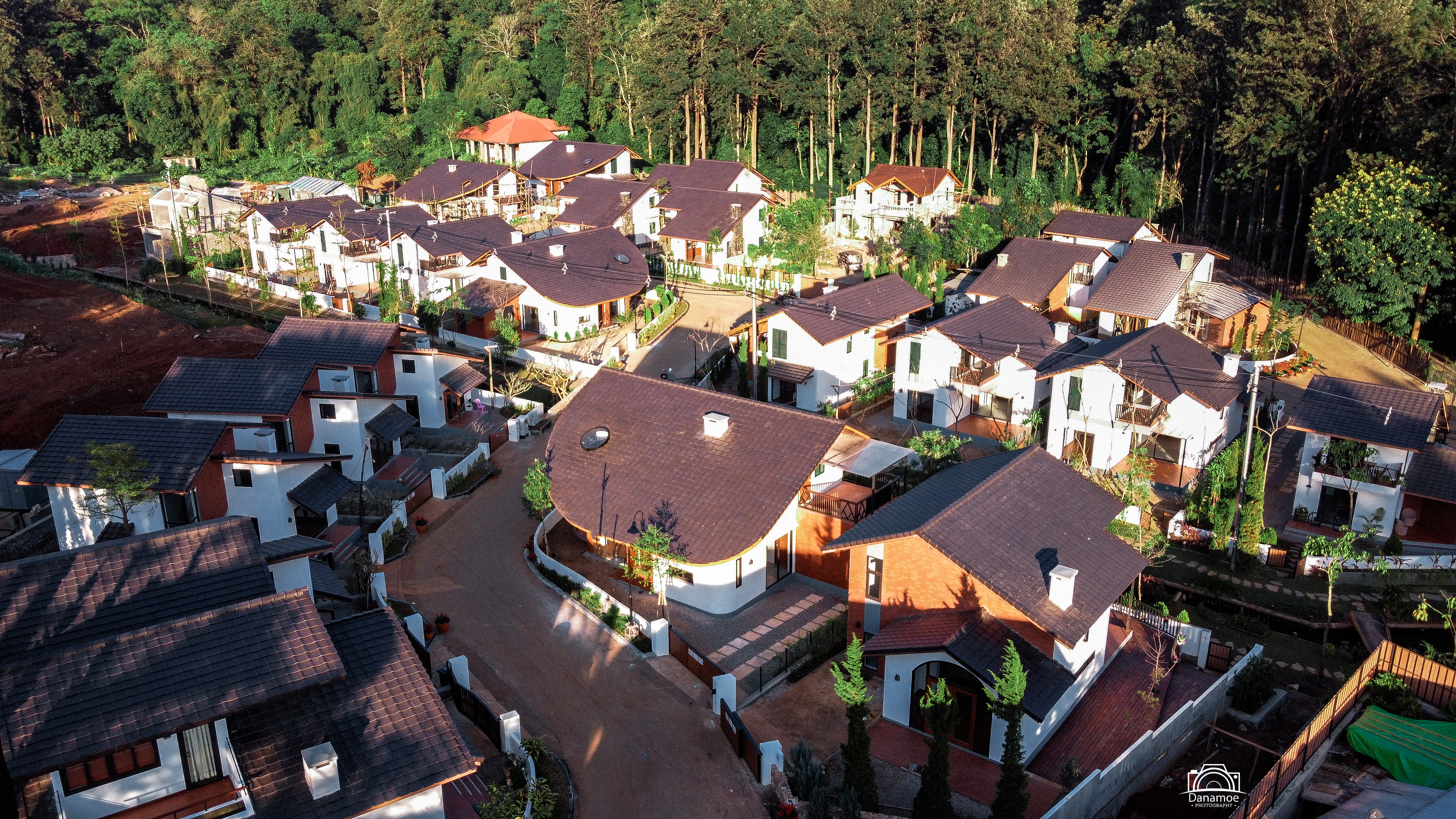 The villas gather together to form a warm village by the stream, hidden in the oak forest. The overall design cherishes each hillside and the current green carpet. The architectural form of the houses is a combination of inspiration from natural topography, indigenous architecture, and modern visual language. The project creates harmony, balance, and close connection between architectural elements and landscape, between nature, indigenous culture, and modern life.